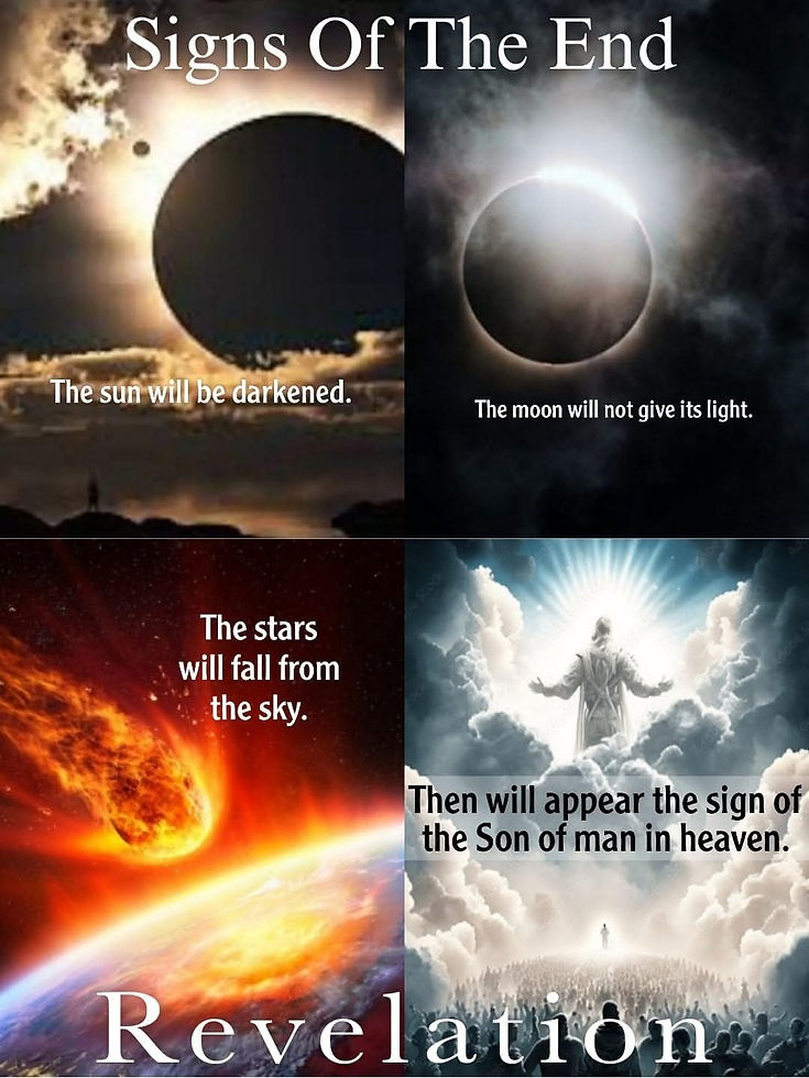 Which is already taking place as it is, plagues, storm, flood, tsunami waves, famine, rumours of wars, nations against nations, pestilence, death, virus, murder, crisis, chaos, mark of the beast is here, new world order, destruction and etc.